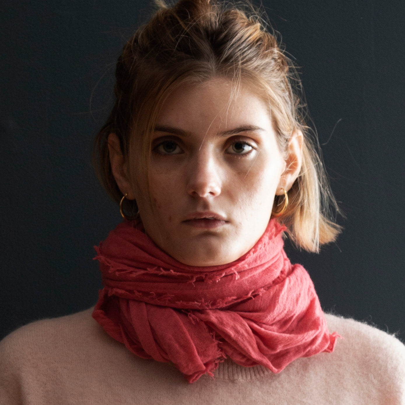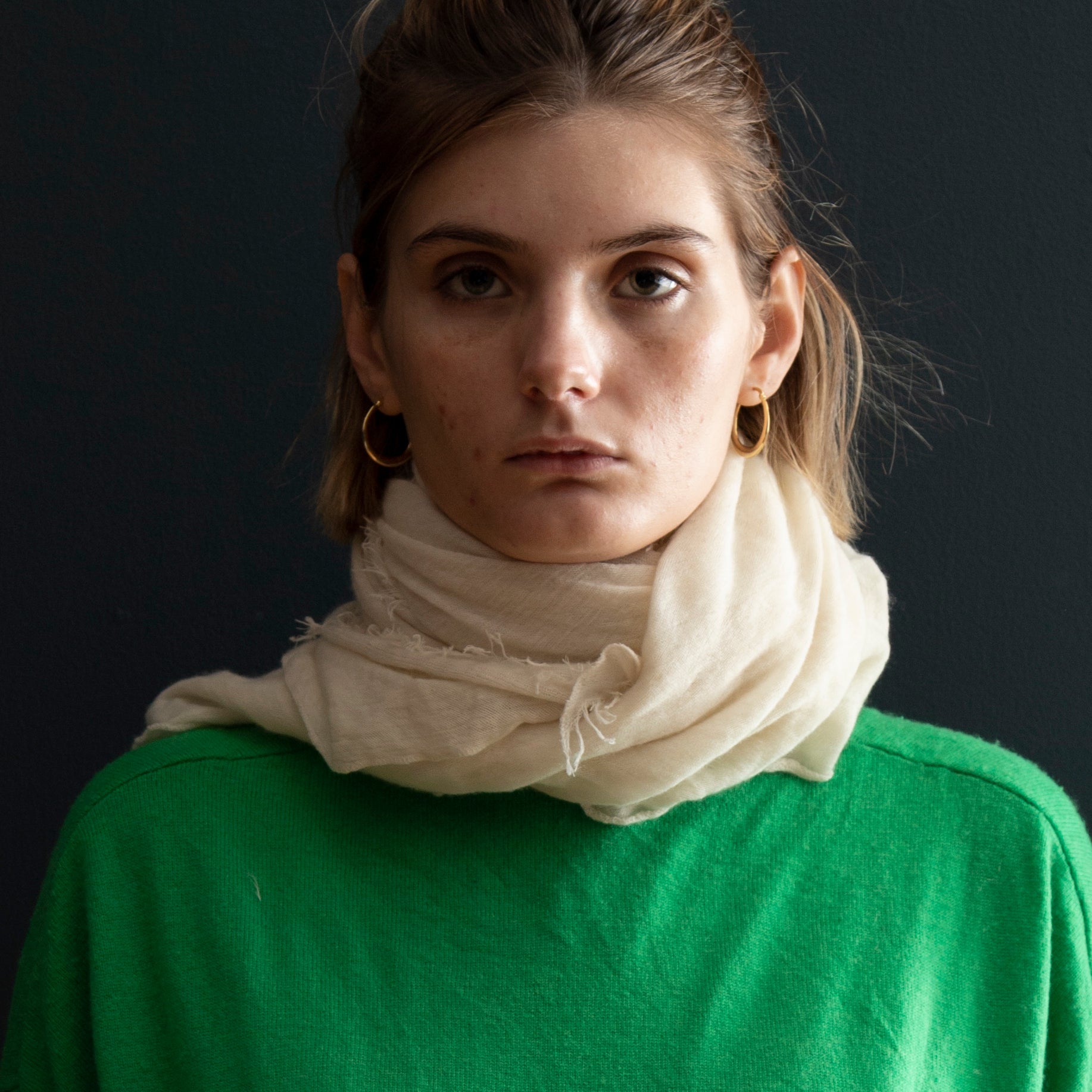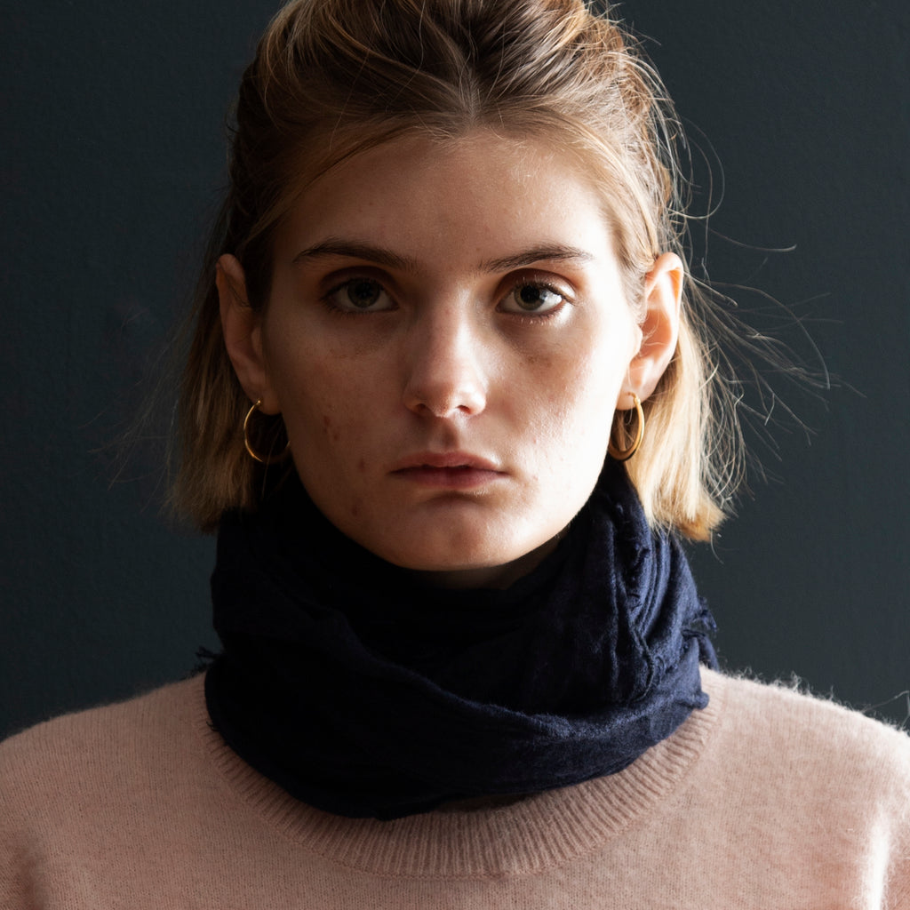The ultimate in luxury and melt-in-your-hand texture, Grisal's Love scarves are knit on the bias, are oblong and have distressed edges. They look wonderful when worn loose, left to fall where they please.
