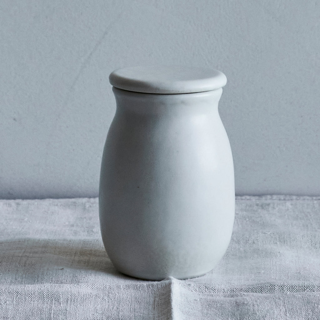 Stephanie draws on the memory of the pottery her grandmother used when she spent summers in Troyes, France. Her family had lived in this medieval town for over 600 years and their house was filled with functional ceramic and metal kitchenware handed down from generations. She remembers eating crepes on solid, simple plates and drinking delicious cold cider in stoneware cylinders. Ancient water pitchers were scattered throughout our garden. Her pottery is simple, quiet and centering, helping to ground an over stimulated world.